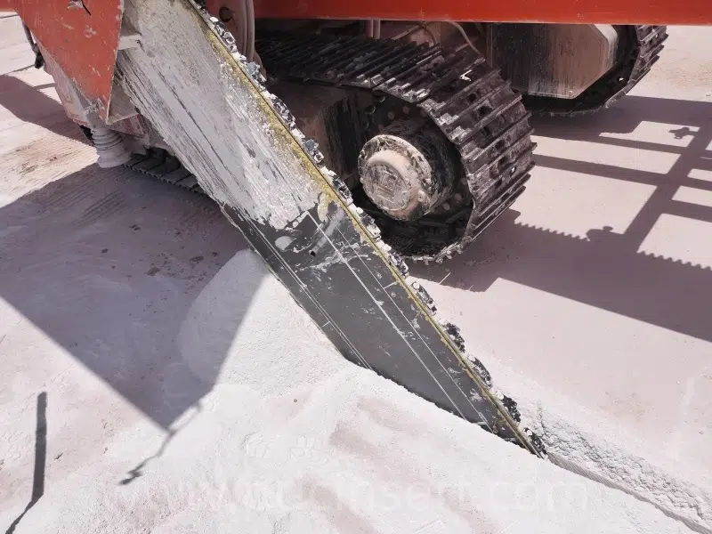 Sitting on massive mineral reserves, the quarry operates 24/7 with a daily production capacity of up to 16,000 square meters, utilizing a fully imported fleet of cutting-edge European, Japanese, and American machinery. The client’s primary product, premium beige marble, is exceptionally hard (Compressive Strength: DRY 116.9 MPa, WET 122.3 MPa). Their site is equipped with 10 heavy-duty Fantini bench chainsaws, alongside dozens of wire saws and gang saws.